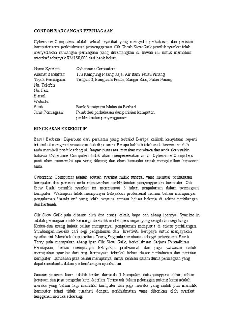 Contoh Rancangan Perniagaan Pdf - Contoh rancangan perniagaan kandungan 1 pengenalan 2.