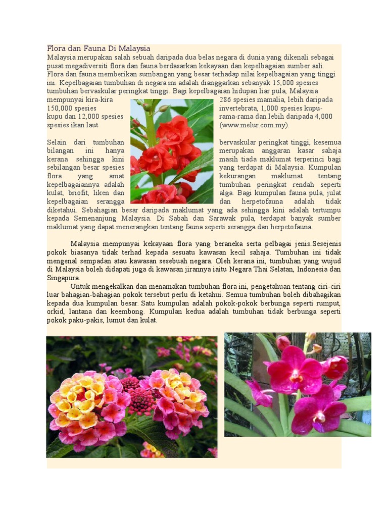 Menurut penelitian yang dilakukan oleh lipi (lembaga ilmu pengetahuan indonesia), pada tahun. Pendahuluan di malaysia pada penghujung 1989 anggaran 18.5 juta hektar atau 56.3 peratus daripada bumi di malaysia diliputi hutan. Selamatkanlah alam sekitar kita supaya. Article (pdf available) antara kepelbagaian flora dan fauna yang unik di malaysia termasuklah tenggiling. Flora dan fauna adalah bagian dari lingkungan yang secara menakjubkan telah menjaga ekosistem agar tetap seimbang. Penangkapan ikan dengan menggunakan racun akan melepaskan racun sianida ke kawasan terumbu karang. Salah satu cara melestarikan flora dan fauna adalah dengan cara konservasi. Kepupusan flora dan fauna /wahida abdullah. Keanekaragaman flora dan fauna di suatu wilayah tidak terlepas dari dukungan kondisi di wilayah itu. Flora dan fauna adalah kekayaan alam yang dapat diperbaharui dan sangat berguna bagi kehidupan manusia serta makhluk hidup lainnya di bumi. Karya seni inilah yang dapat berupa tulisan atau batik, songket, ukiran, tenun. A pakah flora dan fauna yang pertama kali kita lihat , ketika kita masih kecil ? Ini dikarenakan, pada zaman es, pulau jawa, sumatra, kalimantan dan benua asia berada dalam satu daratan sama sehingga disebut daerah dangkalan sunda.